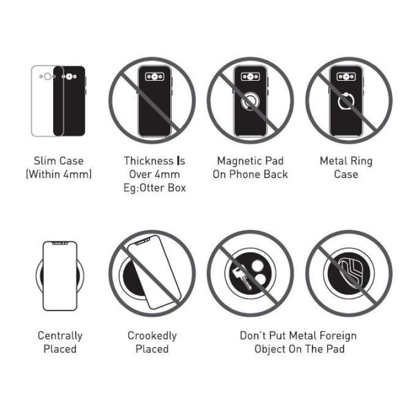 Built in FOD function.Please note that cases made of metal, external attachments such as magnets, credit cards, grips, and stands will cause foreign object detection and interfere with charging.