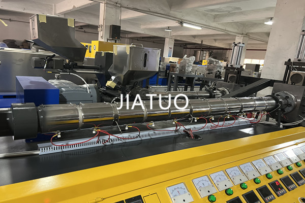 Extrusion process-----PET belt making machine uses a special screw for extruder, which is evenly extruded by heating and melting.