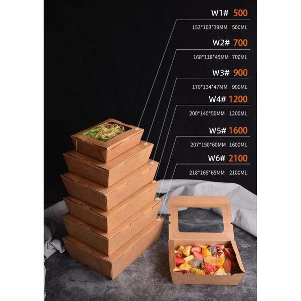Disposable Kraft Paper Salad Lunch Box Takeaway Food Packaging Box with Pet Window