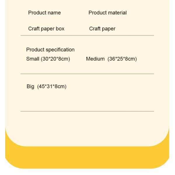 Craft Paper Picnic Lunch Supper Box Multi Specifications High And Good Value, Mass Stock Large-scale Warehouse, Good raw material Quality first, Multi sizes Available to choose, Craft paper material , Strong quality and Thickness, The bright spot is full, Enjoy Life, open the afternoon tea, Large capacity, simple style