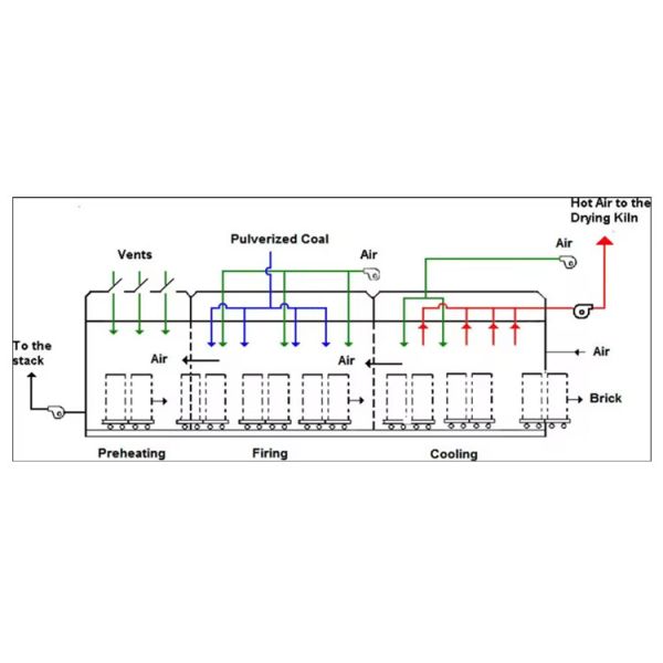 air is blown into the kiln tail of the tunnel kiln to cool the